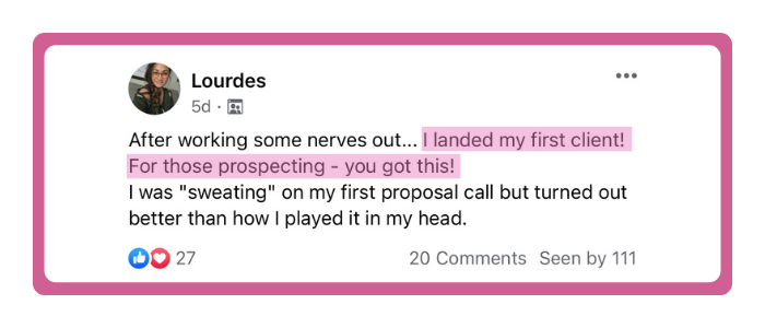 I started in July 2020 and I currently have enough clients to work as an agency full time!"