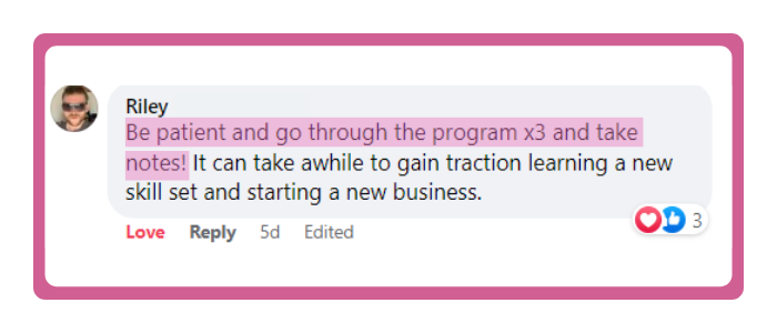 I have another big move at the end of the month and this program allowed me to feel secure + comfortable knowing I'm able to work from anywhere. Seriously the best decision I've made was clicking on that Instagram ad a few years ago!"